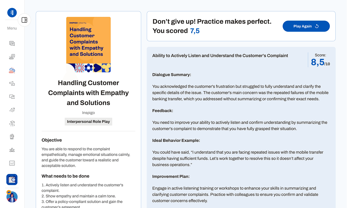 True confidence comes from practice. By simulating pitches, negotiations, and objection-handling in a safe space, sales teams sharpen their skills and carry that assurance into real-world conversations.